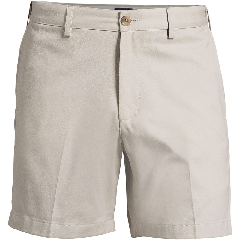 Lands' End Men s No Iron 6 Plain Front Comfort Waist Chino Shorts Light Stone Regular 33
