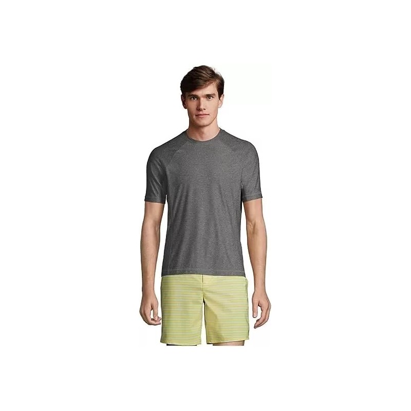 Lands' End NWT Lands' End Men's Crew Neck Short Sleeve Rash Guard Gray UPF 50 M $60 FLD200