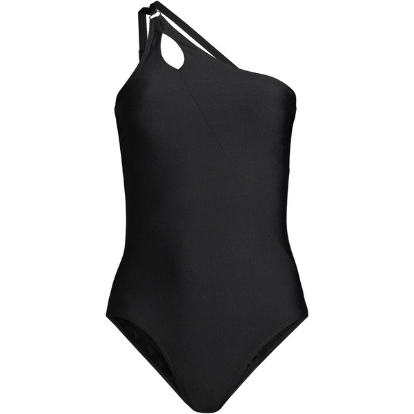 Lands' End Womens Chlorine Resistant One Shoulder Cut Out One Piece Swimsuit Control Black Long Torso 4