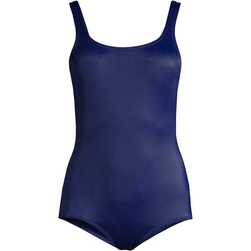 Lands' End Womens Chlorine Resistant Tugless Tank Soft Cup One Piece Swimsuit Deep Sea Navy Long Torso 10