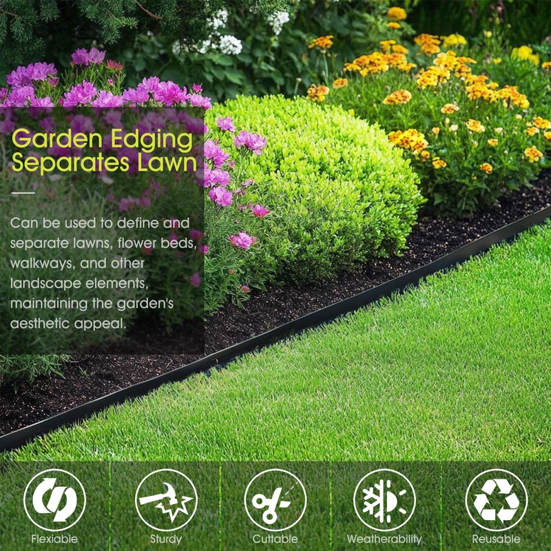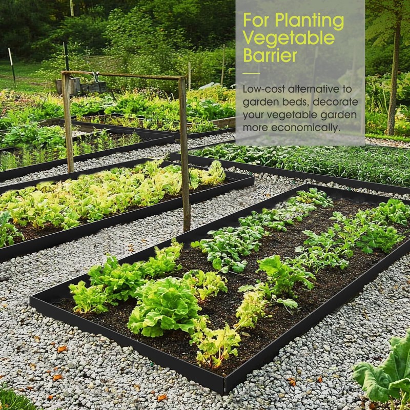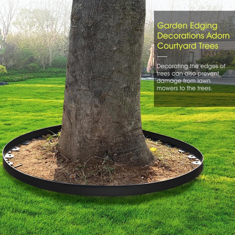 - Suitable for: This garden lawn edging border is suitable for loose ground and provides a good separation between grass and garden. It can be used to improve the appearance of landscape edges and create clean gardens and pathways. Ideal for landscape edging, patio gardens and lawns.For Planting Vegetable Barrier.Decorating the edges of trees can also prevent damage from lawn mowers to the trees.