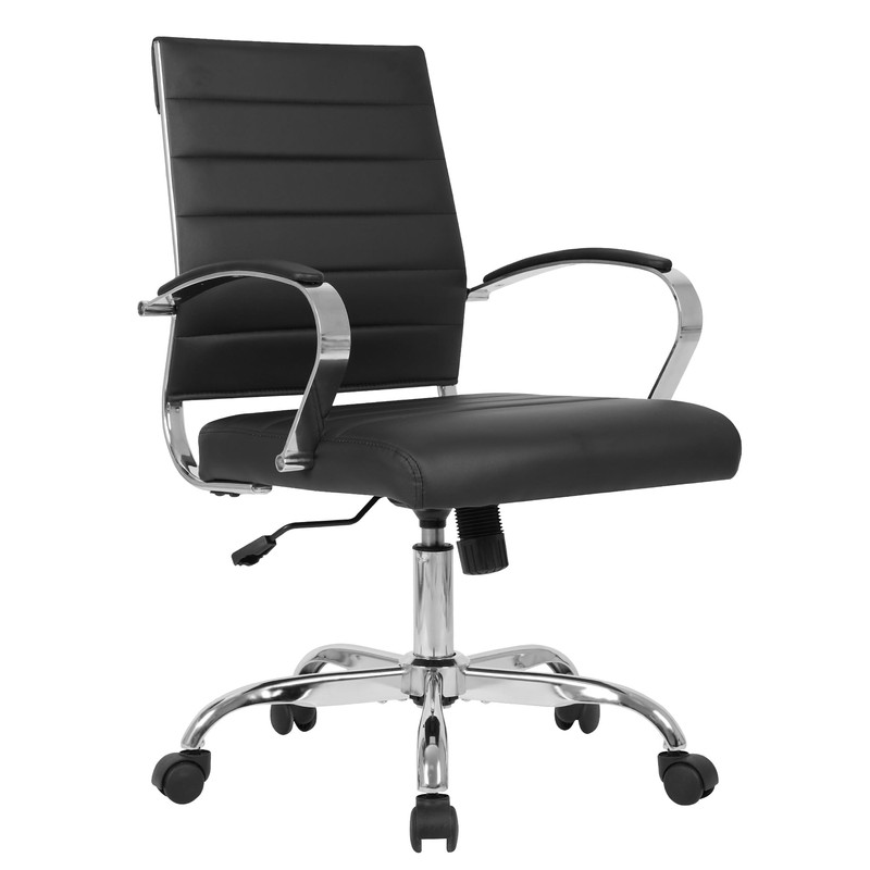 LANDSUN Home Office Chair Mid Back Desk Chair PU Leather Ribbed Executive Swivel Computer Chair with Wheels and Armrests Soft Padded Adjustable Height Conference Task Black