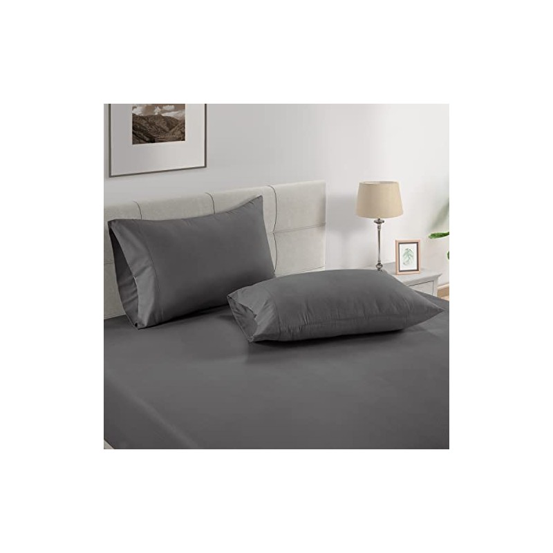 Lane Linen 100% Organic Cotton Pillow Cases Queen Size Set of 2 (20"x30") - Cotton Pillowcases Queen Size - Soft Black Pillow Cases Set of 2 - Queen Pillowcase Pack of 2 - Charcoal