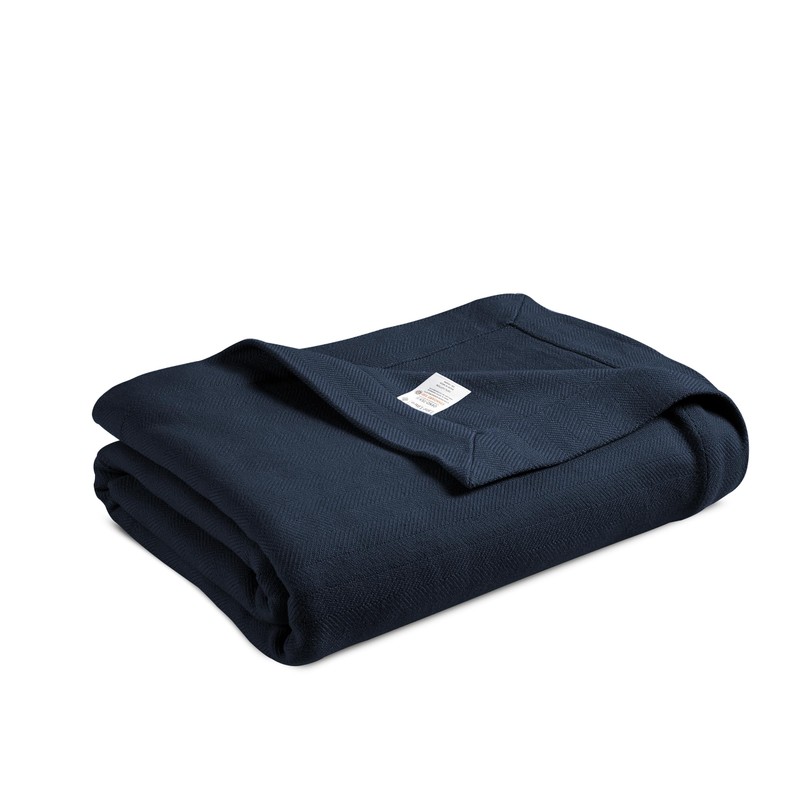 LANE LINEN King Bed Blanket - 100% Cotton Bed Blankets King Size, 440 GSM Herringbone Blanket for King Size Mattress, Soft & Warm Blanket, Breathable & Lightweight Thermal Blanket, 90"x108"- Navy