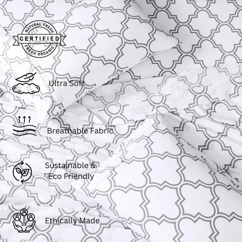 LANE LINEN LANE LINEN 100% Organic Cotton King Size Bedding Sets, Soft & Comfy Percale Sheets, Breathable Luxury Hotel Low Pill Fade Resistant Printed Cotton Sheets,15" Deep Pocket King Sheet Set - Trellis
