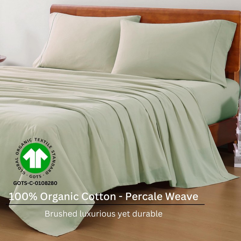 LANE LINEN LANE LINEN 100% Organic Cotton Queen Sheet Set, 4Pc Cotton Sheets Queen Size Bed Set, Soft & Breathable Percale Weave, Deep Pocket Queen Sheets, Hotel-Quality Bed Sheets Queen Size - Mineral