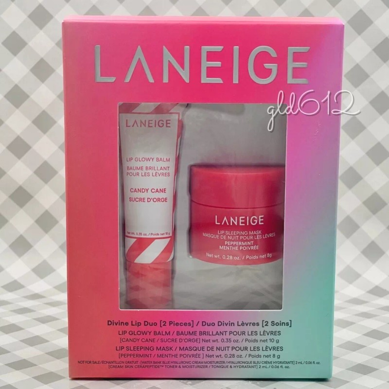 Laneige Divine Lip Duo CANDY CANE Glowy Balm & PEPPERMINT Mask Set Holiday 2024 ••BNIB••