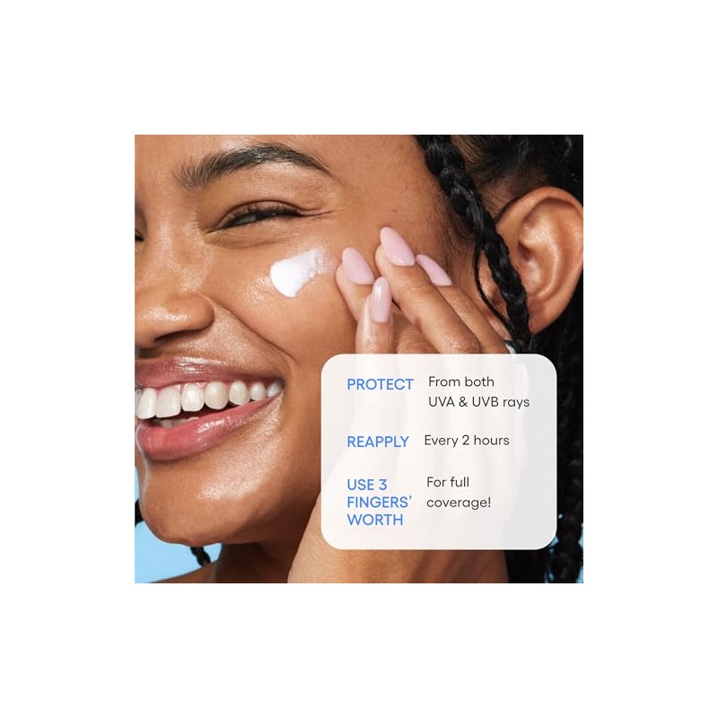 - A moisture-based sunscreen that provides UVA and UVB broad-spectrum protection and soothing hydration with no white cast. The formula is dermatologist-tested and hypoallergenic.