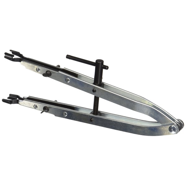 - Jaws are adjustable in width and have edges so thin they can be forced under and over the end of the valve spring to compress it for removal