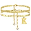LANG XUAN 14K Gold Ankle Bracelets for Women Waterproof Set Boho Cuban Link Anklets Initials Letter Name Non Tarnish Extra Large Ankle Chain Layered Foot Jewelry Personalized Gifts (Gold K)