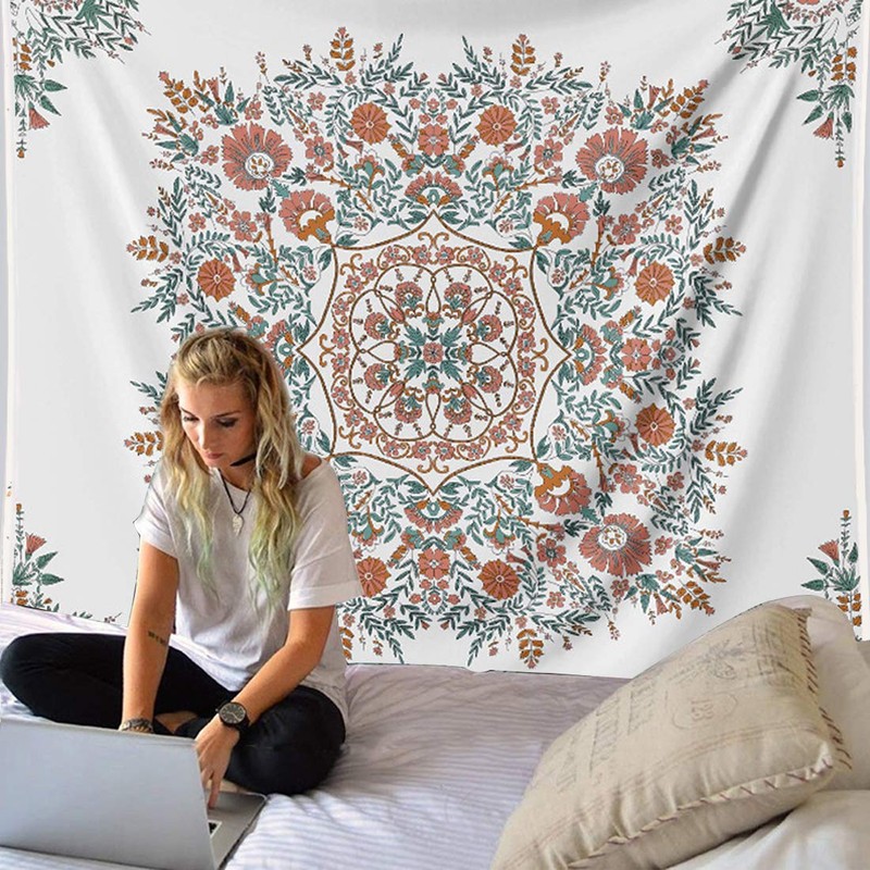 Blooming floral medallion tapestry lending your space a free-spirited bohemian energy. Central design with a polyester fabric weave can be used as a room divider or wall hanging. It can help transform your room into your private sanctuary.