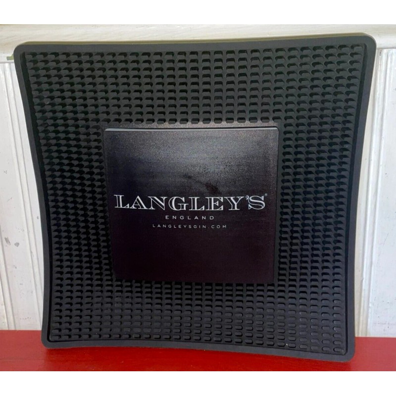 Langley's Gin England Black Rubber 12" x 12" Square Bar Mats NEW