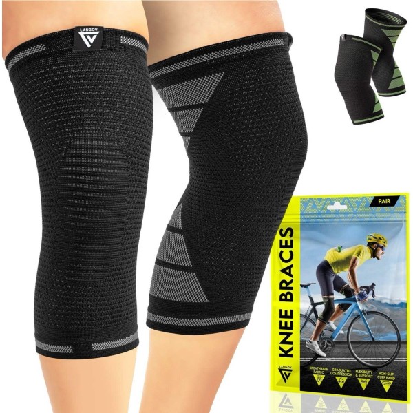 Langov Compression Knee Sleeves for Knee Pain for Women & Men (Pair) Knee braces Medium
