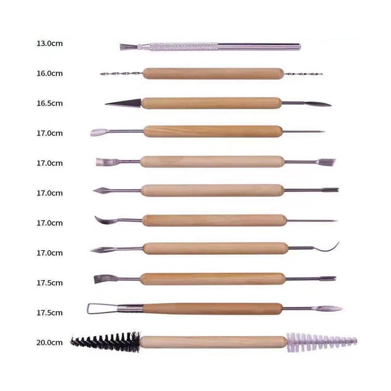 - Set includes 11 pottery tools, 5 double-sided snack tools,6 rubber nibs,4 ball pens,4 plastic model tools,5 clay carving tools and 1 sponge.All sizes are available to meet the needs of you various craft projects for clay models and different creative effects.