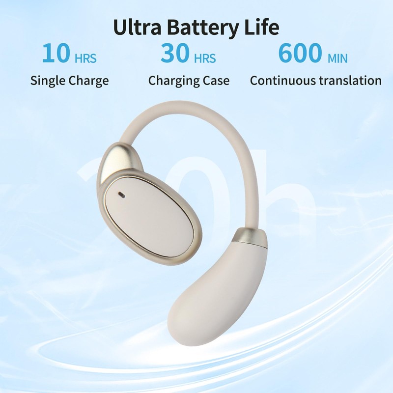 - Long Battery Life & Superior Design: Equipped with a high-quality 50mAh battery, our translation earbuds can work continuously for 10 hours. Additionally, the charging case comes with a 400mAh battery, extending the usage time up to 30 hours. With advanced noise cancellation and ergonomic design, these translator earbuds are comfortable for long-term wear and design for travel, language learning, and business trips