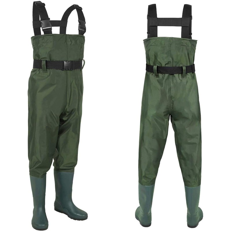 Langxun chest waders are made from 100% waterproof PVC, hace adjustable shoulder straps and belts. Boots made of great quality, strong, durable rubber. Flexible, safe non-slip grip sole. Easy to clean. Very lightweight and comfortable to wear.
