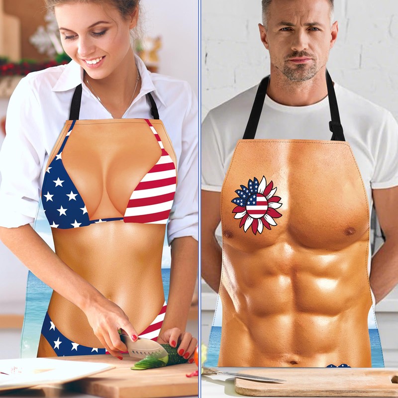 - Intriguing Pattern Designs: this patriotic apron set includes both men's and women's aprons with realistic and vibrant designs, printed with digital technology; Flag print apron turns BBQ into a patriotic show; Easily cleanable, these aprons can uplift your mood and add a distinctive touch to your everyday cooking