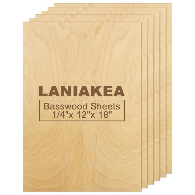 LANIAKEA 6PCS Basswood Sheets 1/4"x 12"x 18" Basswood Plywood Sheets for Laser Cutting & Engraving Unfinished Wood for DIY Ornaments and Architectural Model