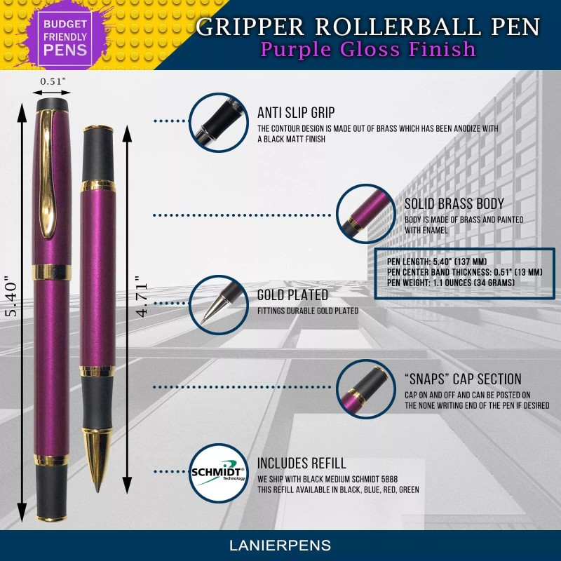 Lanier Pens Gripper Rollerball Pen - Purple Gloss with Anti Slip Grip (Budget Friendly Pen)