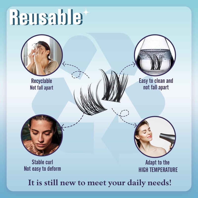 - 【Perfect for All Lash Enthusiasts】 Our Eyelash Clusters are designed to meet the needs of every user - from first-time applicators to professional makeup artists. Beginners appreciate the easy-to-apply individual clusters, while lash experts love the professional-quality results. These are ideal for daily wear, special occasions, photoshoots, or bridal makeup. Environmentally-conscious users will appreciate the reusable design that reduces beauty waste.