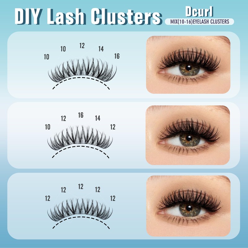 - 【Premium Cluster Lashes Kit - Natural Wispy Design】 Our lash extension kit features beautiful natural wispy style clusters in Mixed Length lengths with perfect C-curl. Each set contains 140pcs premium quality clusters with strong yet flexible bands that maintain their curl through heat and humidity. The waterproof design allows for multiple wears while keeping their perfect shape.