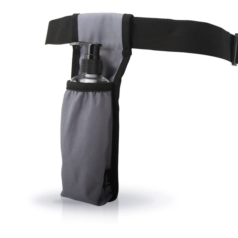 LANLAOER Bolsa para botella de loción de masaje, ajustable, botella de masaje, cubierta de cuero, bolsa de masaje para la cintura (1 bolsillo, gris)