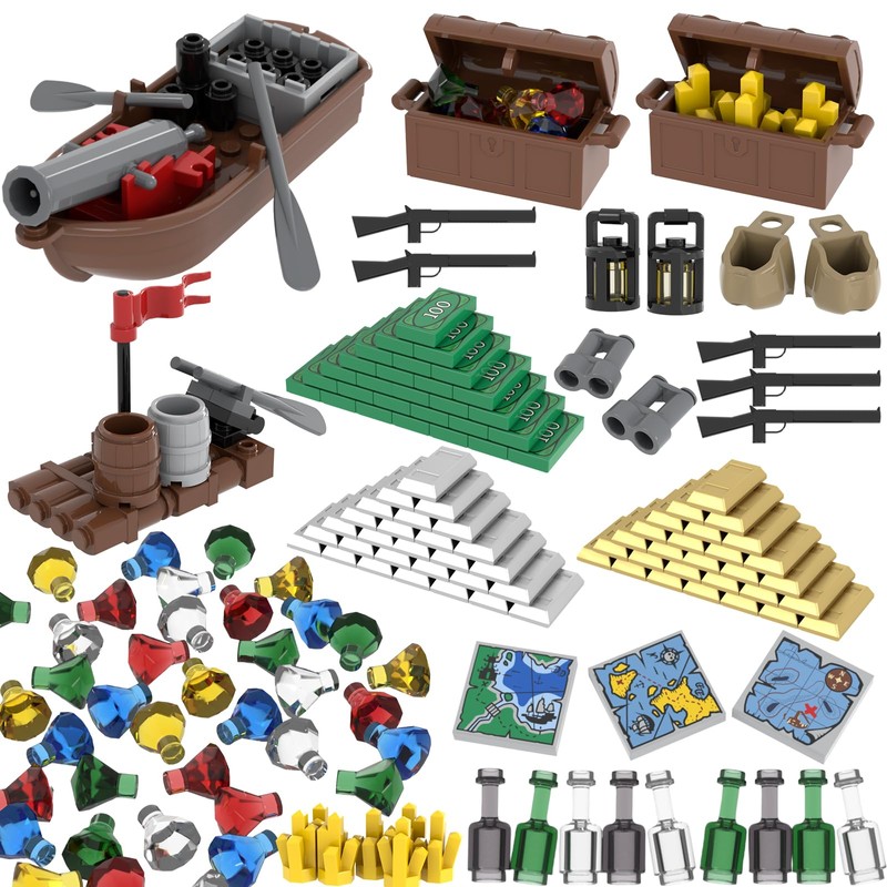 - Interactive Pirate Adventure-Includes mini boats, a cannon, oars, and a treasure map for immersive storytelling and pirate role-play. Inspire imagination with scenes of battles and hidden loot!