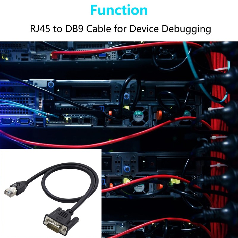 - 【RJ45 to DB9 Debugging Cable】RJ45 Male to DB9 9-Pin RS232 Serial console cable connects your PC laptop to any device with an RJ45 console port for debugging.