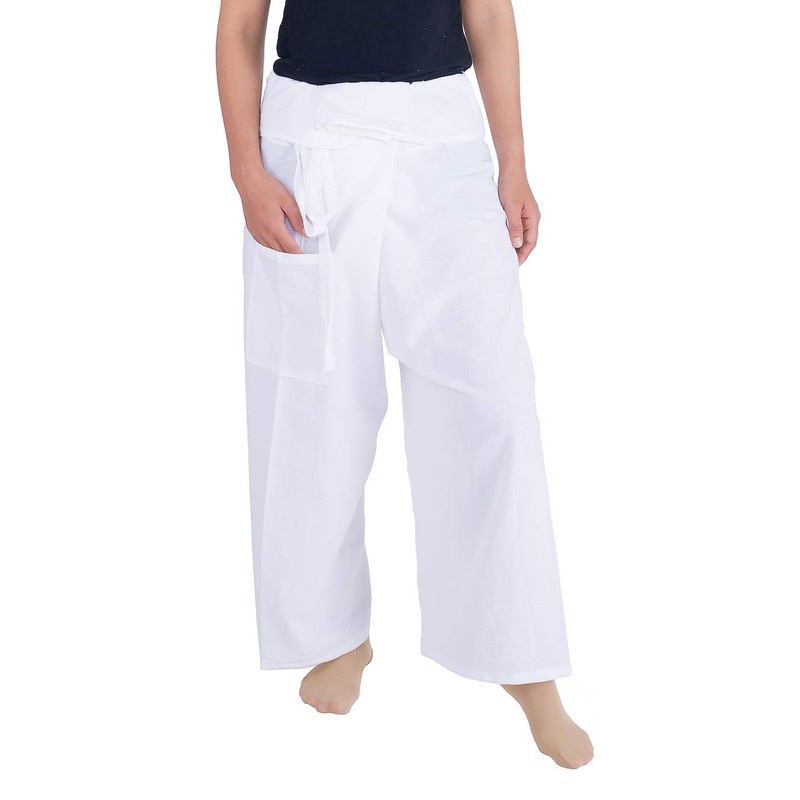 - FEATURES: Cool and Comfy Traditional Fisherman Pants, One Side Pocket, Wide Legs, Loose Fit, Wide Adjustable Waist, Possibility to Adjust Length Also by Folding Waist More