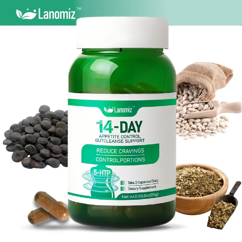 LANOMIZE Gut Health Complex – Delayed-Release Probiotics, White Kidney Bean Extract & 5-HTP | 60 Capsules