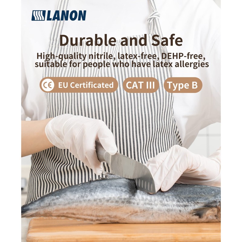 LANON Food Safe Disposable White Nitrile Gloves, Latex-Free, Powder-Free, Textured Fingertips, Cooking, Cleaning, Large