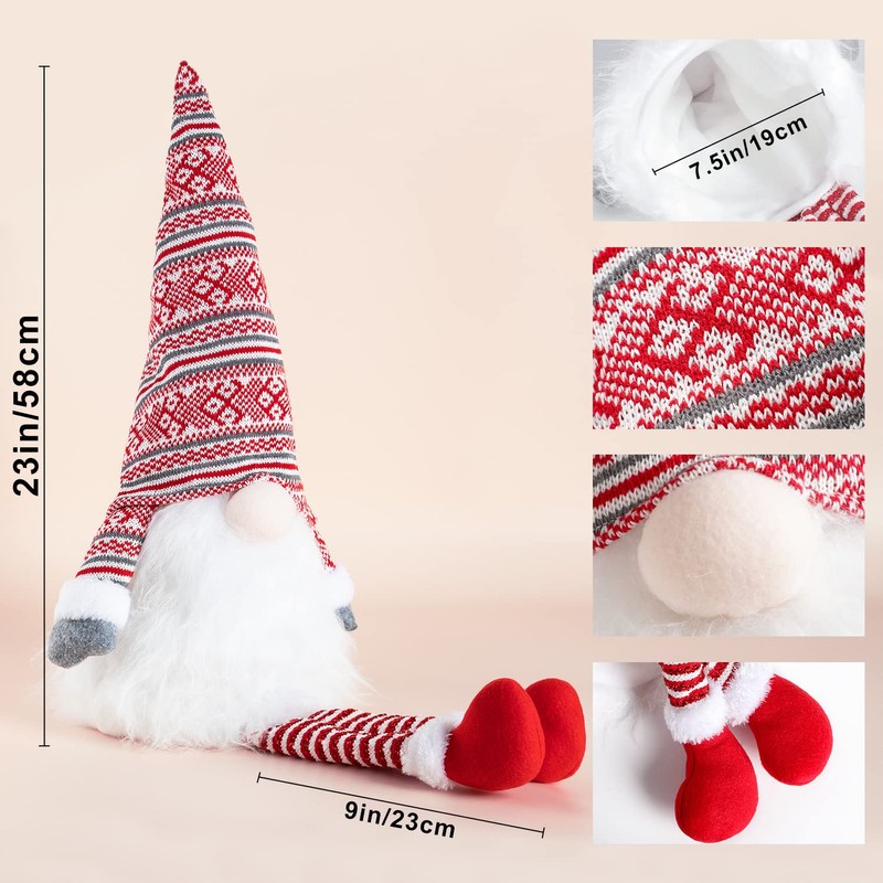 - 🎅🏼【Size and Compatibility】The Gnome Tree Topper is 23 inches high from the bottom of the hat to the top and 9 inches wide. Suitable for most Christmas trees, the lovely Santa Claus can sit firmly on all kinds of tree tops.