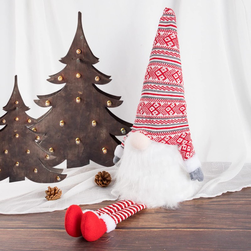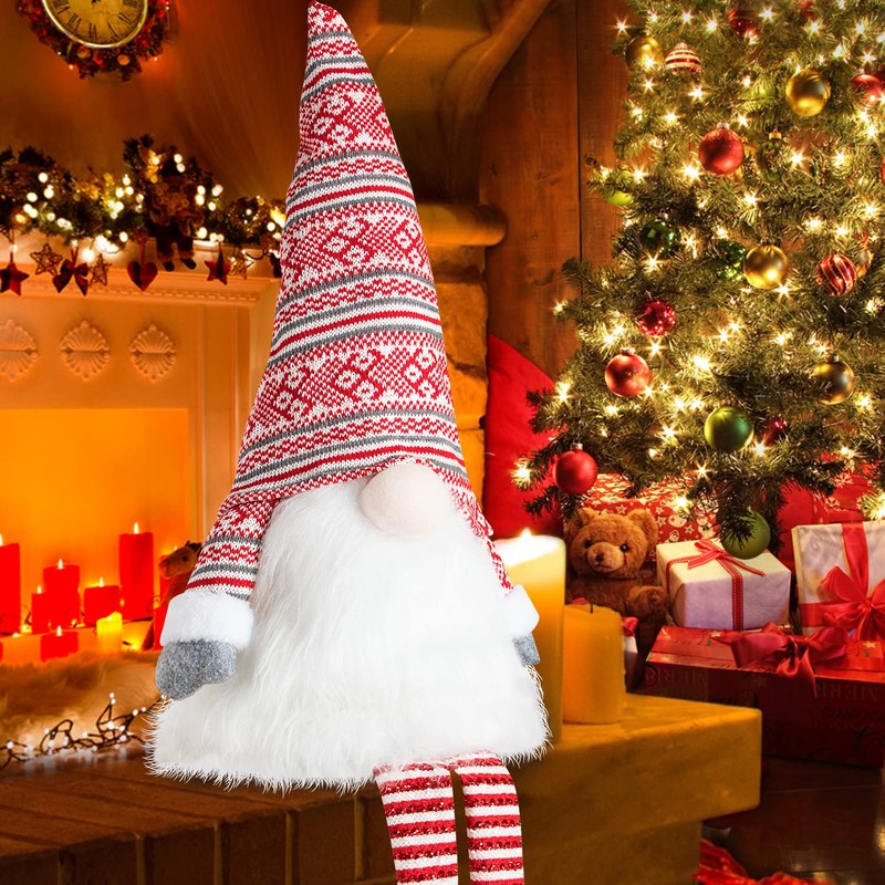 Lanpn Christmas Tree Topper Large Tomte Gnome Santa Ornaments 23 Inch, Plush Gnome with High Hat and Legs for Xmas Tree Home Fireplace Table Ornaments Decorations (Red)