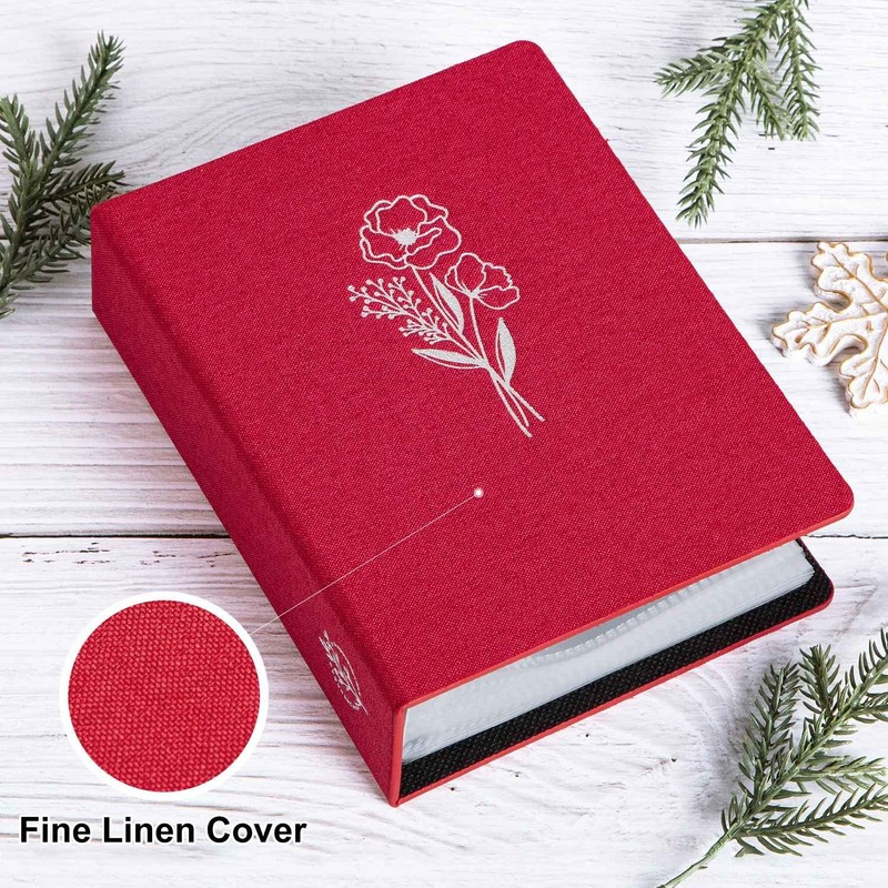 Lanpn Small Photo Album 6x4 2 Packs, Each Pack holds 100 Pictures, Slip in Pockets Mini Linen Top Loading Photo Albums for Portrait Only 10x15cm Picture Red