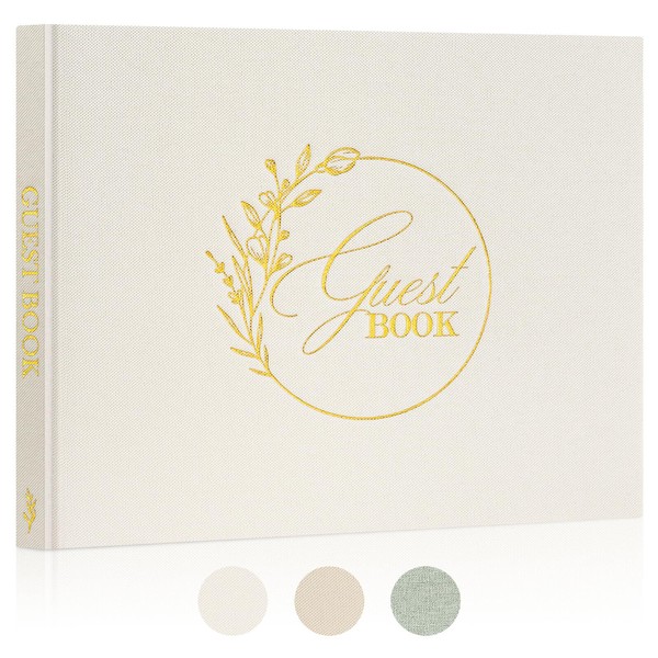 Lanpn Wedding Guest Book for Wedding Reception - Elegant Linen Hardcover Guestbook with 108 Blank Pages for Sign in and Photos - Polaroid Guest Book for Bridal Shower Baby Shower Wedding Party (Cream)