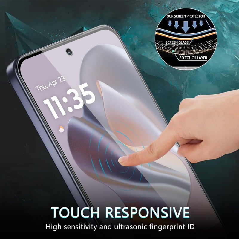 - Support Fingerprint ID:The ultra-thin film does not interfere with touch response and screen fingerprint ID. Advanced Nano glue and full adhesive coverage feature allow excellent touch sensitivity and interact with the ultrasonic sensor that makes the function of the in-display fingerprint sensor work. (Note: Reinsert the fingerprint after applying the screen protector)