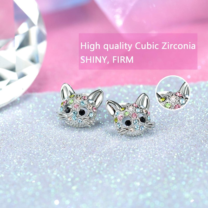 Lanqueen Cute Cat Stud Earrings Hypoallergenic Cat Cubic Zirconia Earrings for Women Teens Girls Cat Lovers