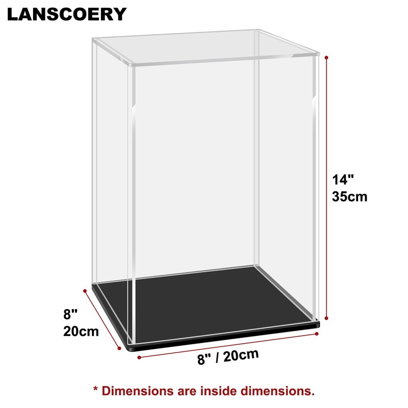 LANSCOERY Acrylic Display Case, Assemble Showcase Display Box for Collectibles, with Dustproof & Seamless Display Design, 8x8x14inch Black Base