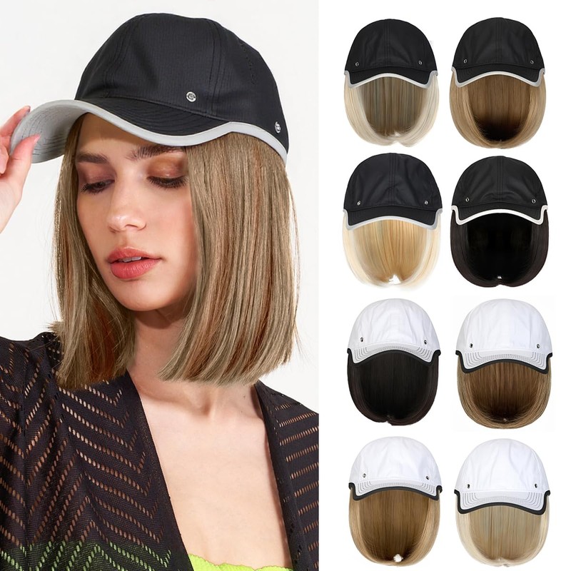 Lansigreen Quick Dry Hat with Hair Extensions Sun Protection Hat Wig Lightweight Outdoor Baseball Cap Attached 13" Short Straight Hairpiece Synthetic for Women Ash Blonde Mix Light Brown