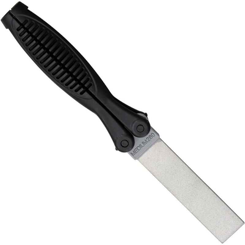 The Medium/Fine (280/600 grit) Double Sided Diamond Paddle folds into the ergonomic nylon handle for protection and ease of carrying. The Lansky Folding Diamond Sharpening Paddles are ideal for every workshop. Renowned for their hardness, diamonds are an excellent abrasive for the fast reconditioning and maintenance of all your various tools and knives.