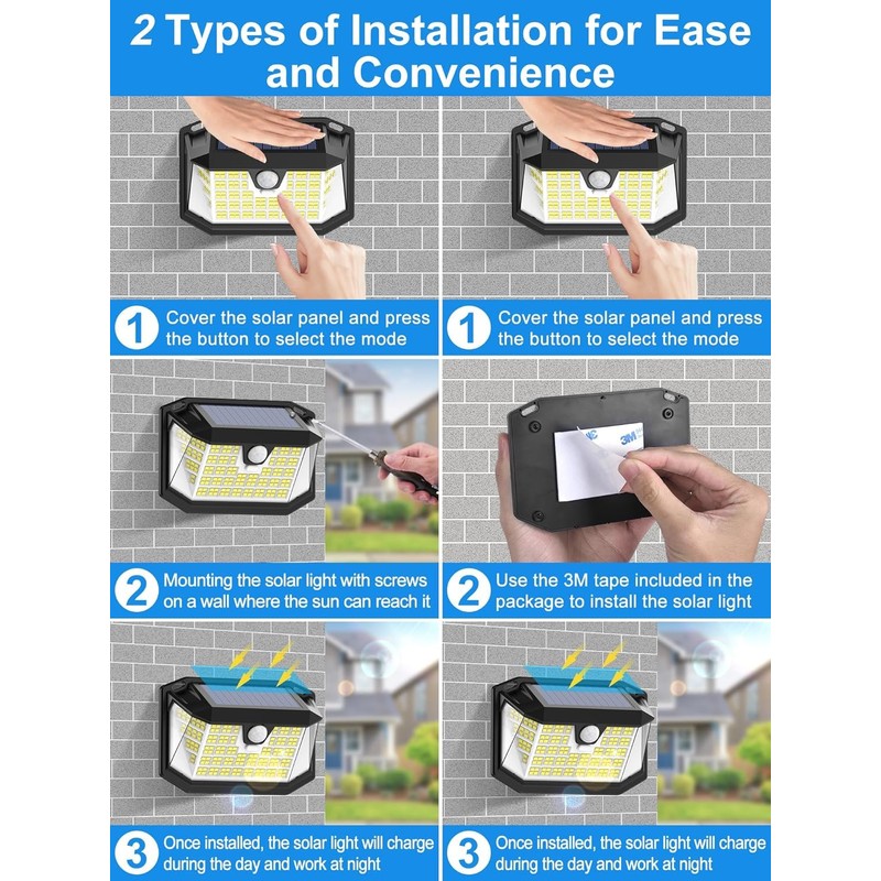 - 3 Modi: Unsere Solar Aussenleuchte bieten 3 Modi: 1) den Modus "Immer an" f??r automatische Beleuchtung von der D?mmerung bis zum Morgengrauen, 2) den Modus "Dim Light Sensor", der sich bei schwachem Licht einschaltet und heller wird, wenn eine Bewegung erkannt wird, und 3) den Modus "Strong Light Sensor", der die hellste Stufe einschaltet, wenn eine Bewegung erkannt wird, und sich nach 25 Sekunden ohne Bewegung ausschaltet.