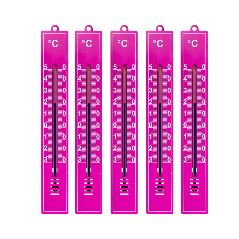 Lantelme 5 Piece Outdoor Thermometer Set Temperature -30 °C to 50 °C Plastic Colour Pink 17.5 cm Length Analogue Garden Thermometer Weatherproof Thermometer for Indoor Outdoor Garden (Pink)
