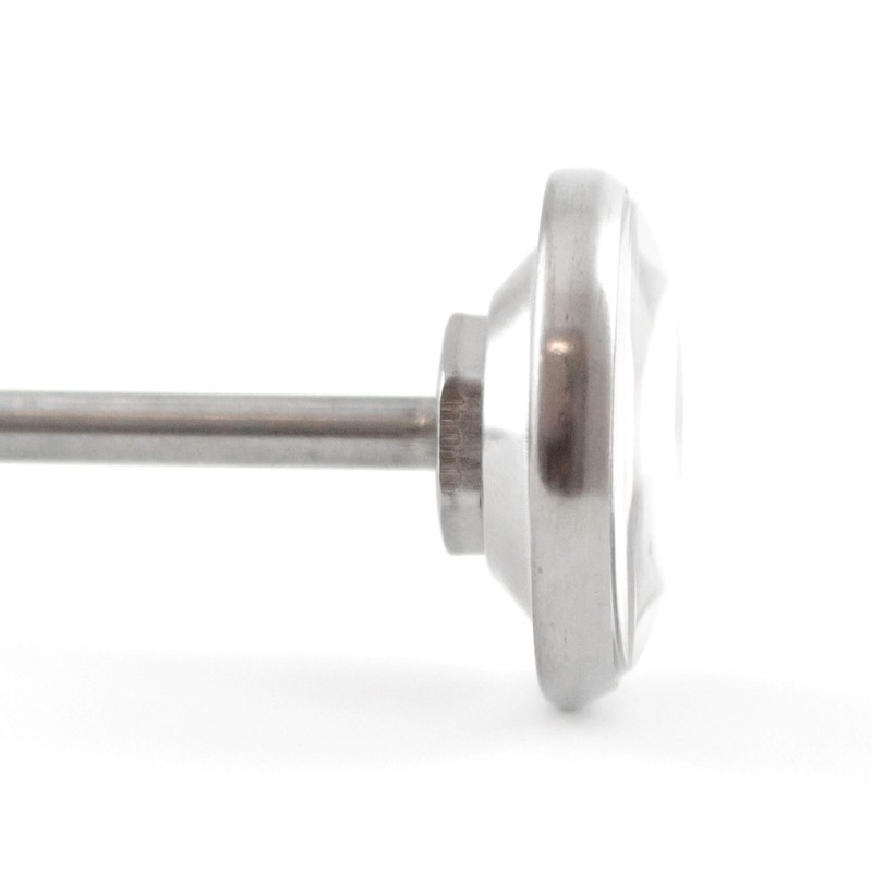 - Temperature probe made of stainless steel. The lightweight meat thermometer with easy-to-read analogue display and 10 cm long meat needle is ready to use at any time and requires no batteries Environmentally conscious cooking, frying or grilling. Protective tube with clip for easy attachment to your cooking apron. Dimensions: 125 mm length x 28 mm diameter at the display