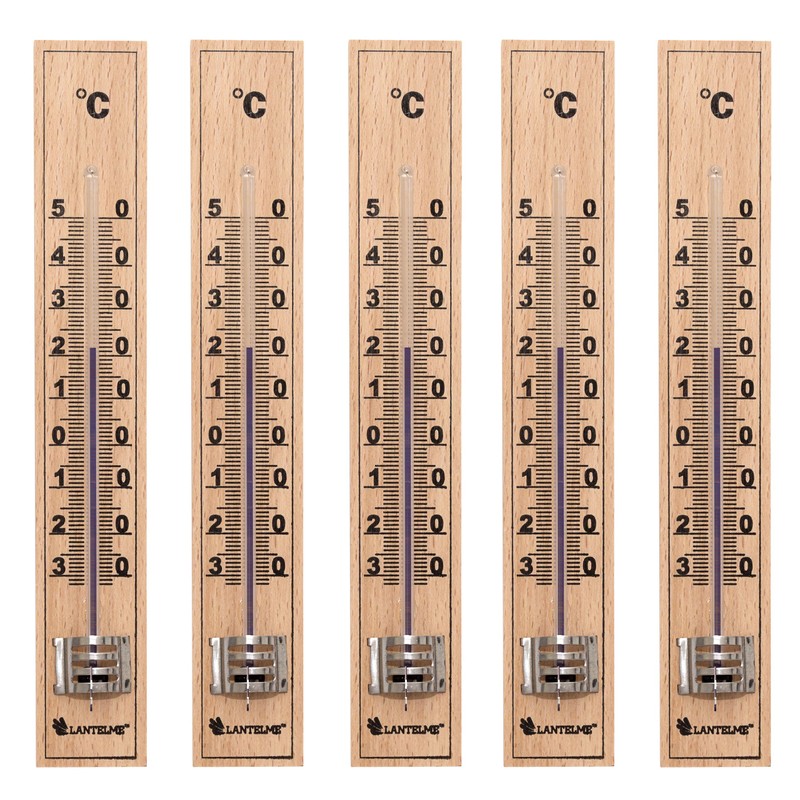 Lantelme Set of 5 Indoor Outdoor Thermometer Set Wood 17 cm Analogue Made in Germany Beech Wood Also for Garden and Room Garden Thermometer (5)
