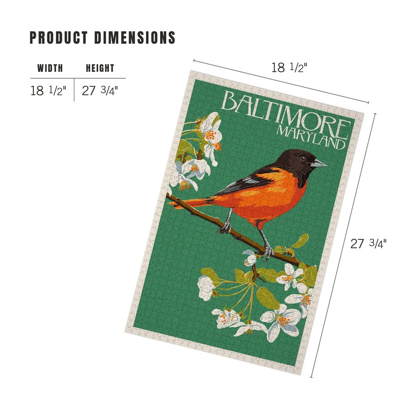 - 18.5 x 27.75 inches Lantern Press 1000 Piece Jigsaw Puzzle, Baltimore, Maryland, Oriole Letterpress