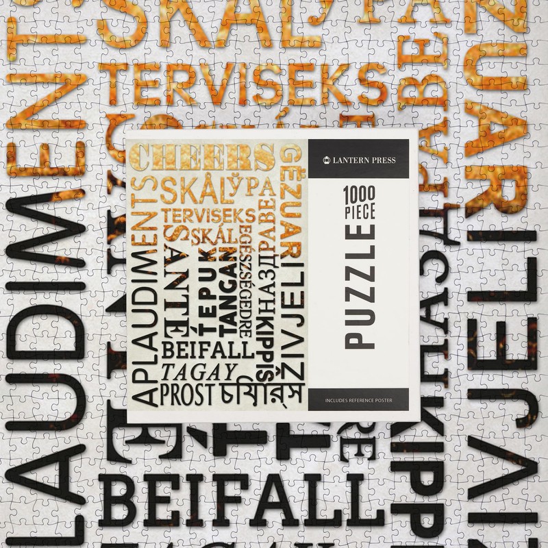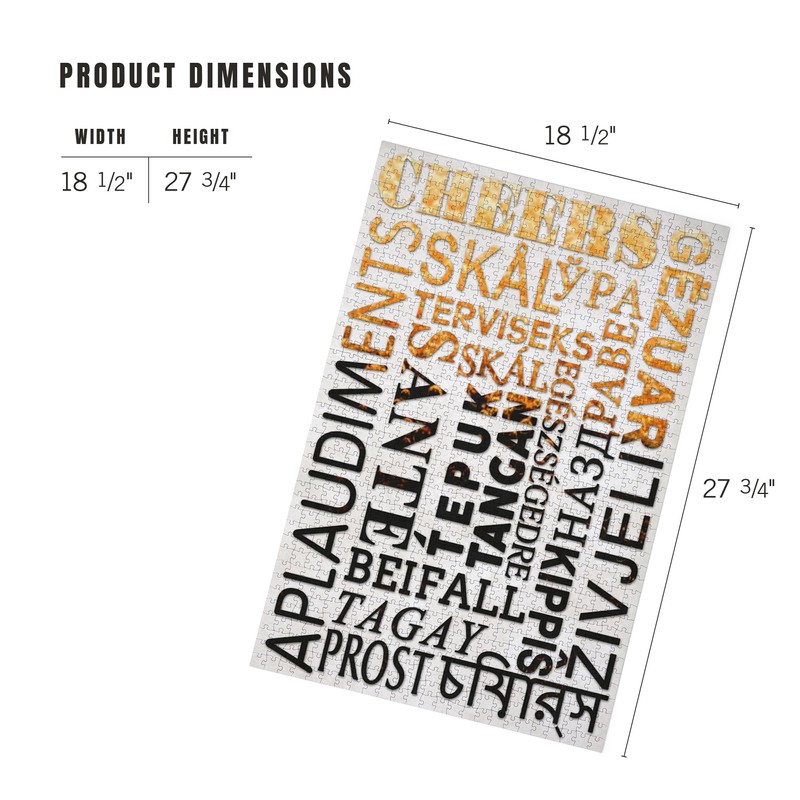 - 18.5 x 27.75 inches Lantern Press 1000 Piece Jigsaw Puzzle, Beer Typography, Cheers in Different Languages