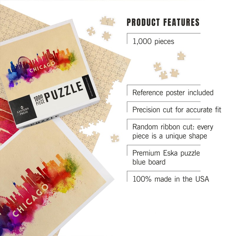 - 18.5 x 27.75 inches Lantern Press 1000 Piece Jigsaw Puzzle, Chicago, Illinois, Skyline Abstract