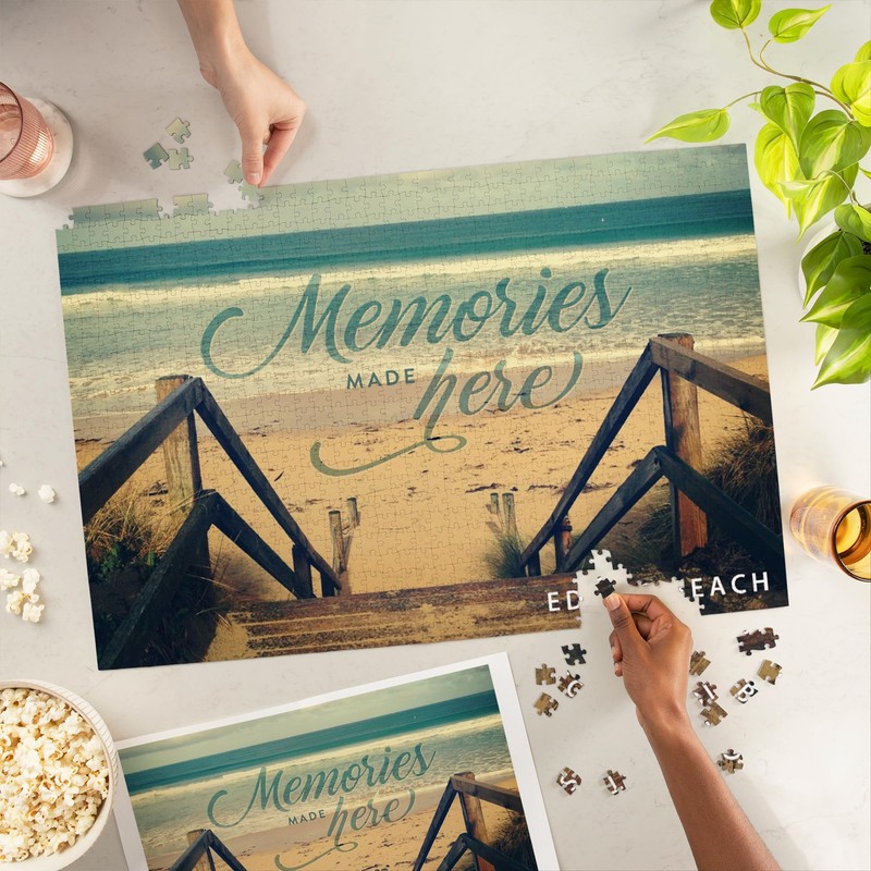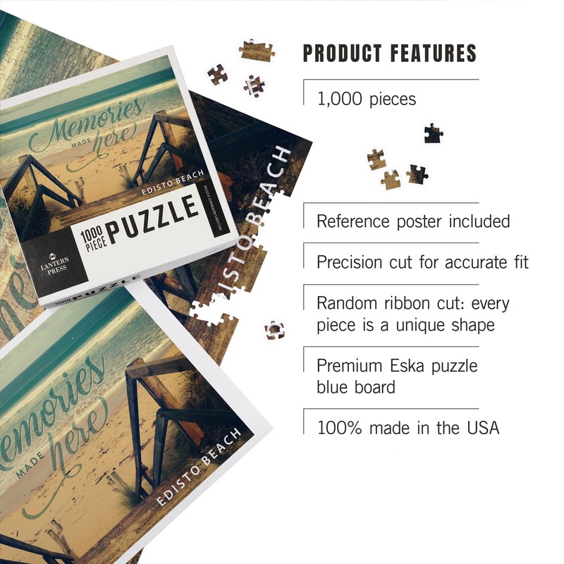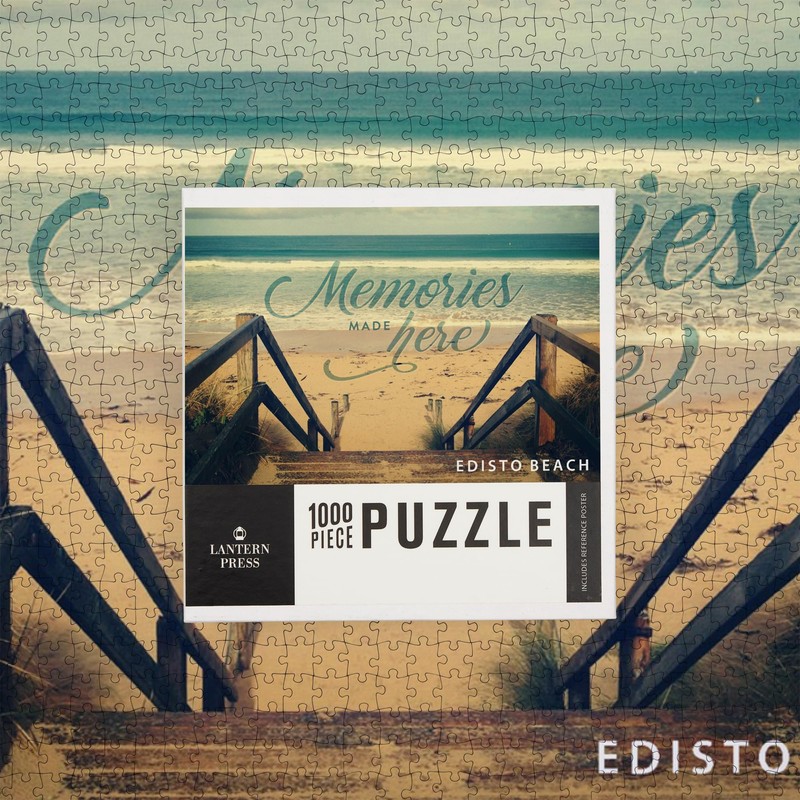 - 18.5 x 27.75 inches Lantern Press 1000 Piece Jigsaw Puzzle, Edisto Beach, South Carolina, Memories Made Here, Sandy Stairs and Beach, Sentiment, Photo
