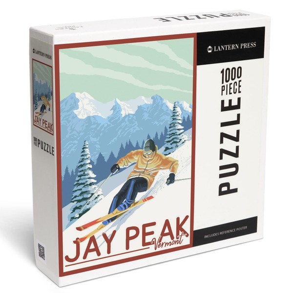 Lantern Press Jay Peak, Vermont, Downhill Skier, 1000 Piece Jigsaw Puzzle for Adults, Made in USA with Reference Poster
