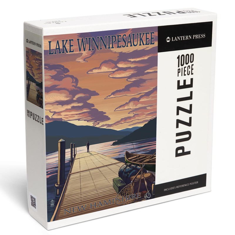 - 18.5 x 27.75 inches Lantern Press 1000 Piece Jigsaw Puzzle, Lake Winnipesaukee, New Hampshire, Dock Scene at Sunset